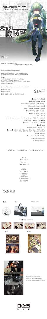 原创V家同人物语音乐CD绘本 《边境小镇物语——失落的机械城》 2.18成都#CD9#(摊位号B12-14)/2.19魔都#CP9#(摊位号L38-39)/2.26帝都#MYC3#(摊位号H29-30)首发! 宣传PV:http://v.youku.com/v_show/id_XMzUyNDM0NTk2.html |